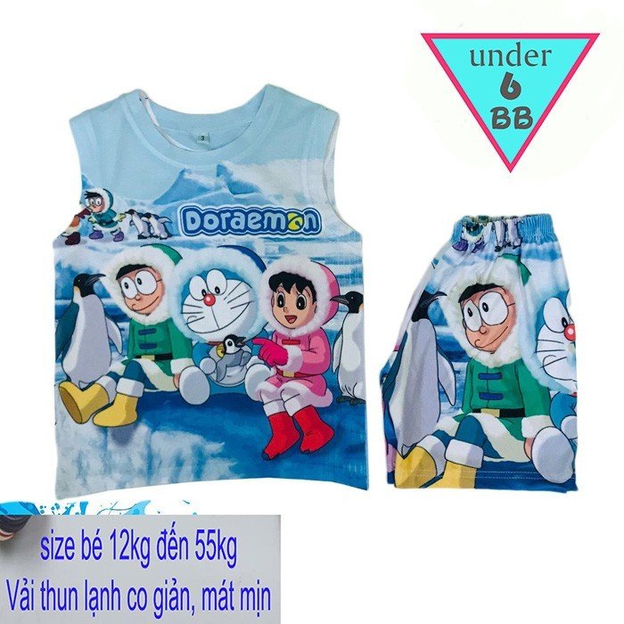 Đồ bộ bé trai thun lạnh sát nách in 3D hình doraemon siêu đáng yêu cho bé trai đi học