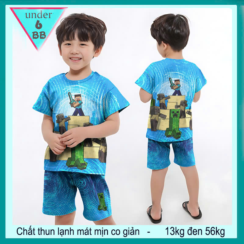 Đồ bộ bé trai thun lạnh 3D hoạt hình Minecraft cho bé đi học thêm , học mẫu giáo