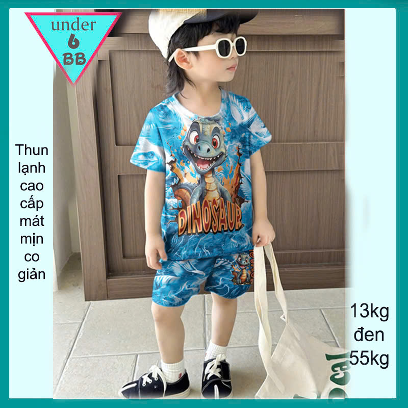 Đồ bộ bé trai thun lạnh hoạt hình in 3D hình Khủng Long siêu dễ thương cho bé đi chơi , đi học