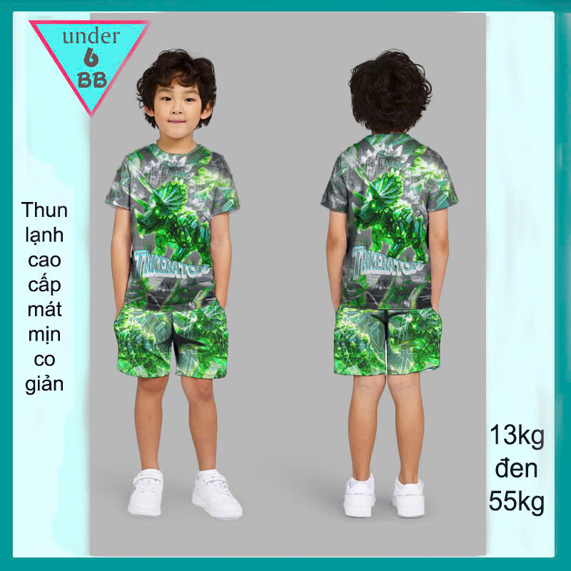 Đồ bộ bé trai thun lạnh 3D hoạt hình Khủng Long Bạo Chúa cho bé đi học thêm, học mẫu giáo