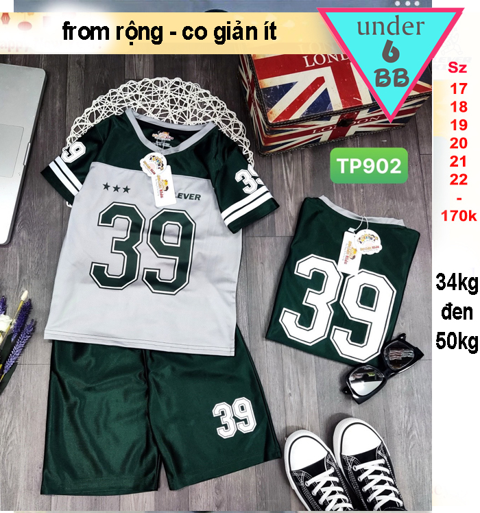 Đồ bộ bé trai thun lạnh thể thao tay ngắn in số 39 cho bé đi chơi, đi học