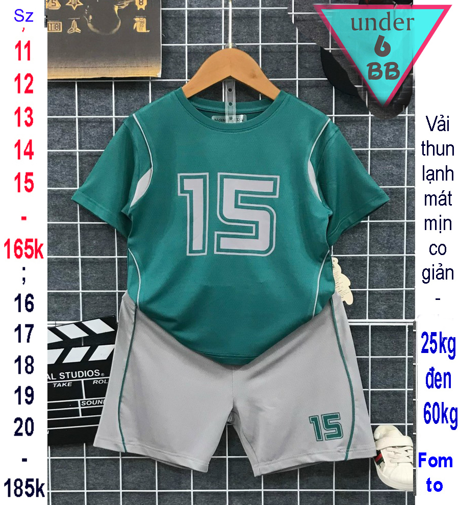 Đồ bộ bé trai thun lạnh thể thao in số 15 phong cách bóng rổ cho bé đi chơi ,đi học