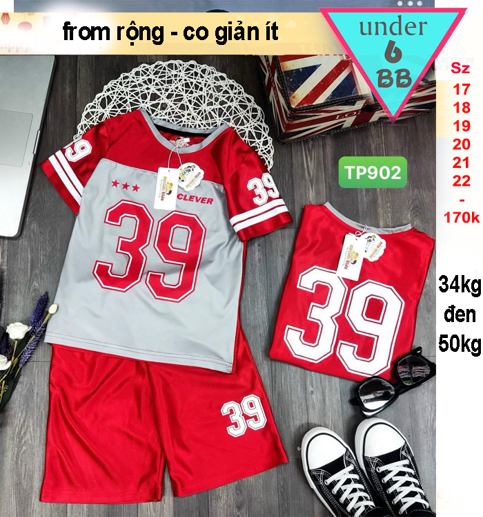 Đồ bộ bé trai thun lạnh thể thao tay ngắn in số 39 cho bé đi chơi, đi học