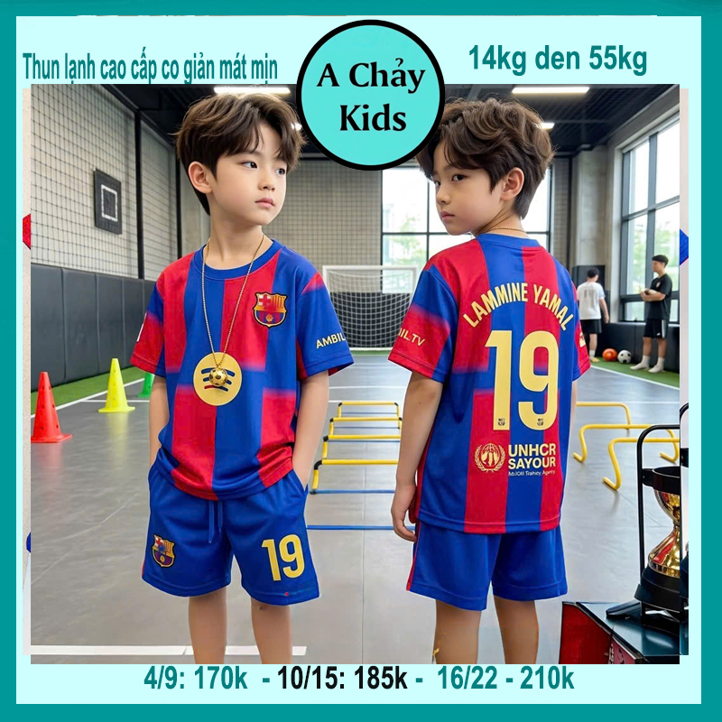 Đồ bộ bé trai thun lạnh thể thao in số 19 style thể thao bóng đá cho bé đi chơi , đi học