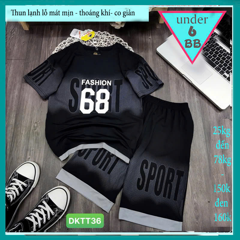 Đồ bộ bé trai thun lạnh thể thao in số 68 phối chữ loang phong cách cá tính cho bé đi chơi , đi học