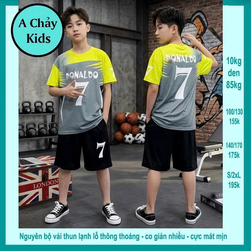 Đồ bộ bé trai thun lạnh thể thao in số 7 phối màu loang style đá banh cho bé