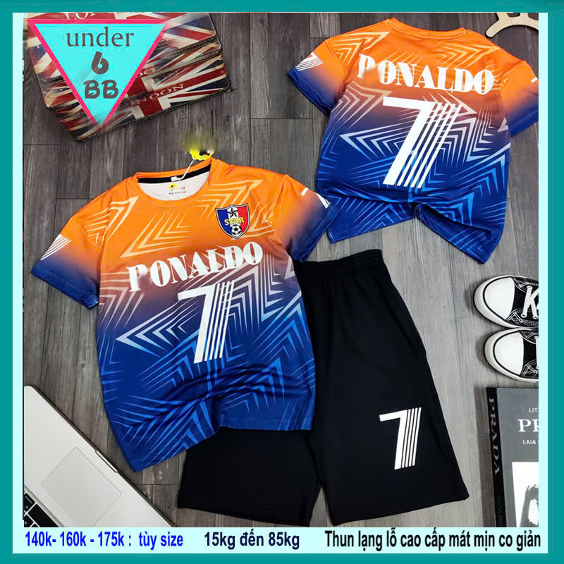 Đồ bộ bé trai thun lạnh thể thao in số 7 phối màu loang style đá banh cho bé