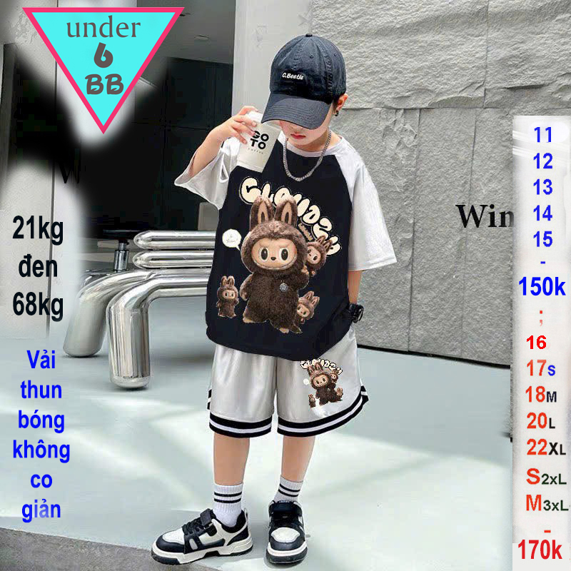 Đồ bộ bé trai thun lạnh thể thao vải bóng in hình Lababu siêu hottrend phong cách cá tính cho bé đi chơi, đi học