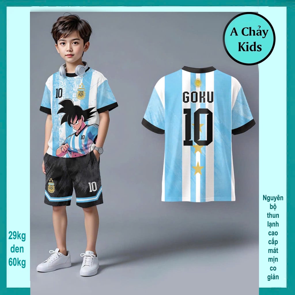 Đồ bộ bé trai thun lạnh in 3D hình Songokuu phong cách thể thao cá tính