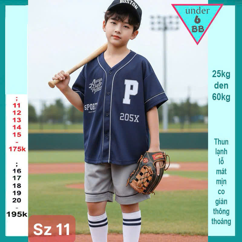 Đồ bộ bé trai thun lạnh thể thao in chữ P phong cách bóng chày cho bé đi chơi , đi học
