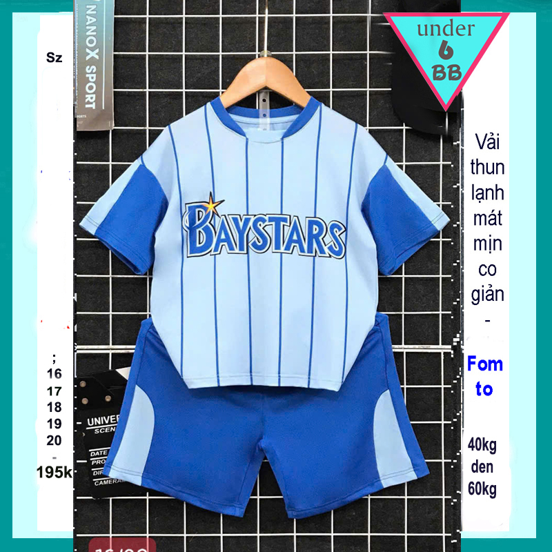 Đồ bộ bé trai thun lạnh thể thao in chữ phối sọc phong cách bóng chày cho bé diện đi chơi , đi học