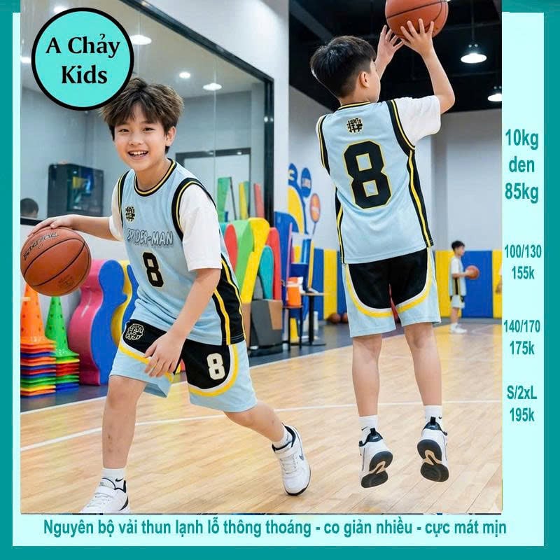 Đồ bộ bé trai thun lạnh thể thao in số 8 phong cách bóng rổ cá tính cho bé diện đi chơi , đi học