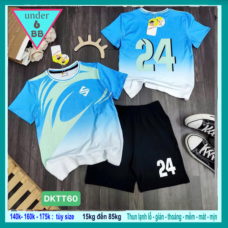 Đồ bộ bé trai thun lạnh thể thao in số 24 phong cách bóng đá cho bé diện đi chơi , du lịch
