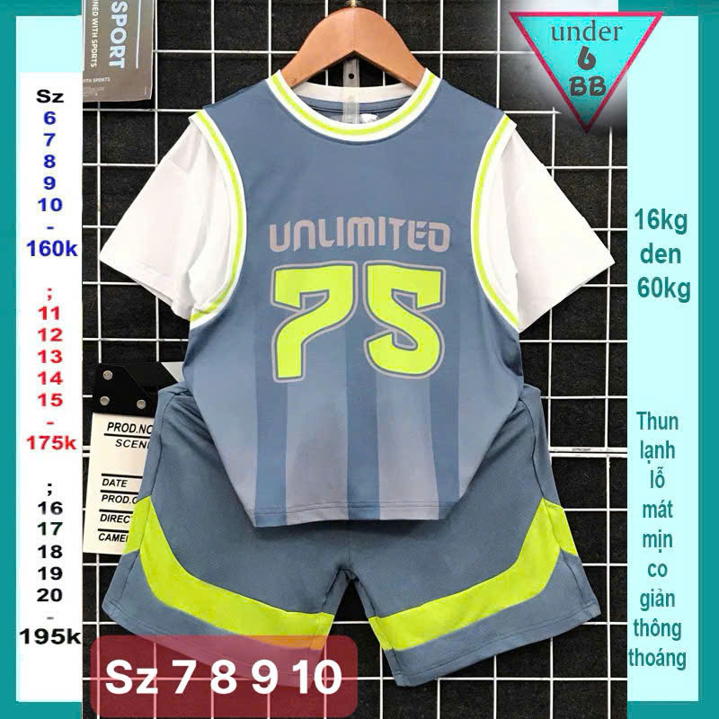 Đồ bộ bé trai thun lạnh thể thao in số 75 phong cách bóng rổ cho bé diện đi chơi , đi học