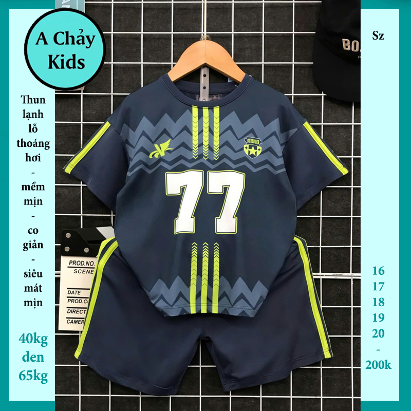 Đồ bộ bé trai thun lạnh thể thao in số 77 phong cách bóng đá cho bé diện đi chơi , đi học