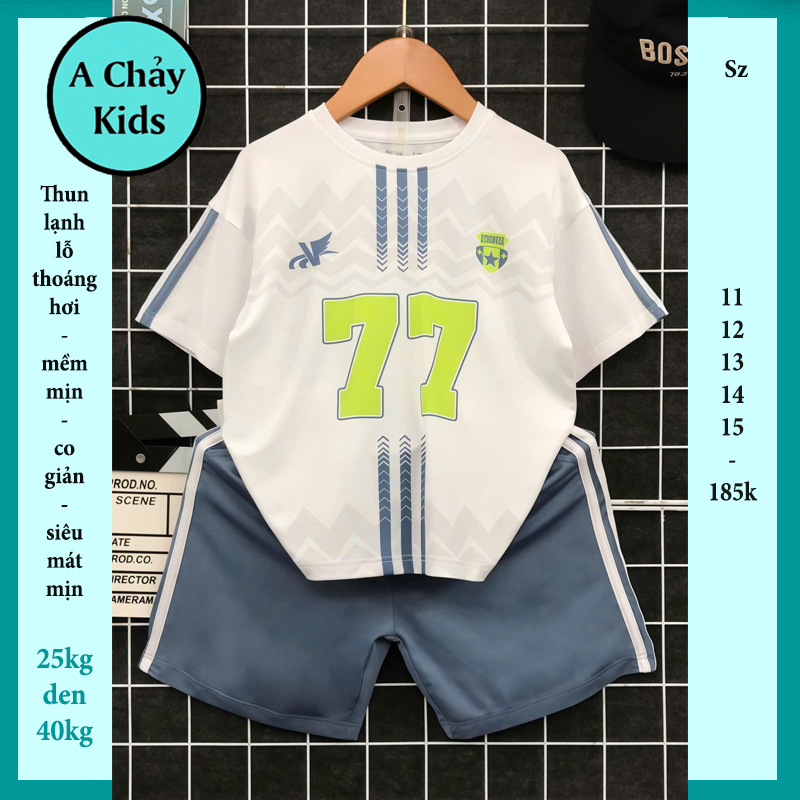 Đồ bộ bé trai thun lạnh thể thao in số 77 phong cách bóng đá cho bé diện đi chơi , đi học