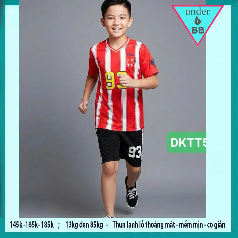 Đồ bộ bé trai thun lạnh thể thao in số 93 phối sọc phong cách bóng đá cho bé diện đi chơi , đi học