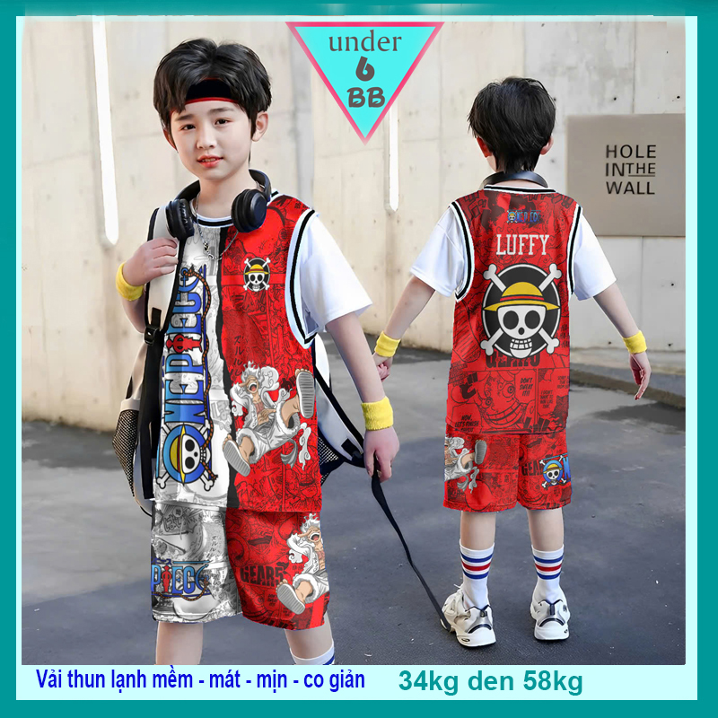 Đồ bộ thun lạnh cho bé in 3D hình Luffy thiết kế theo phong cách thể thao cực cá tính