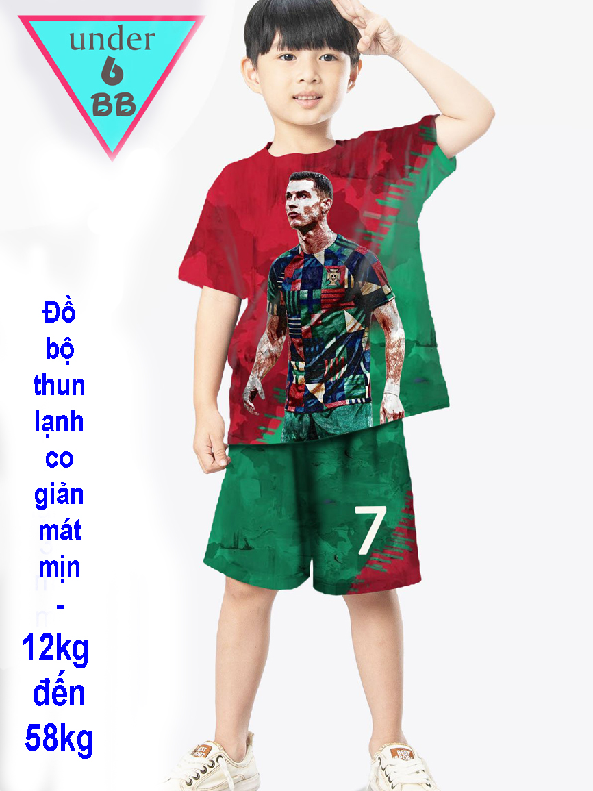 Đồ bộ bé trai thun lạnh tay ngắn in 3D hình cầu thủ đá banh số 7 cho bé đi chơi đi học