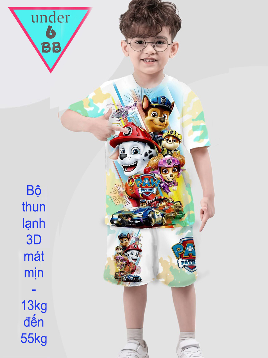 Đồ Bộ bé trai thun lạnh tay ngắn in 3D hình đội chó cứu hộ - Paw Patrol cho bé đi chơi đi học
