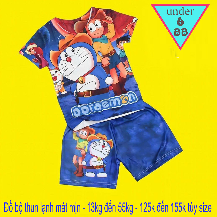 Đồ Bộ bé trai thun lạnh tay ngắn in 3D hình Doraemon siêu đáng yêu cho bé đi chơi , đi học