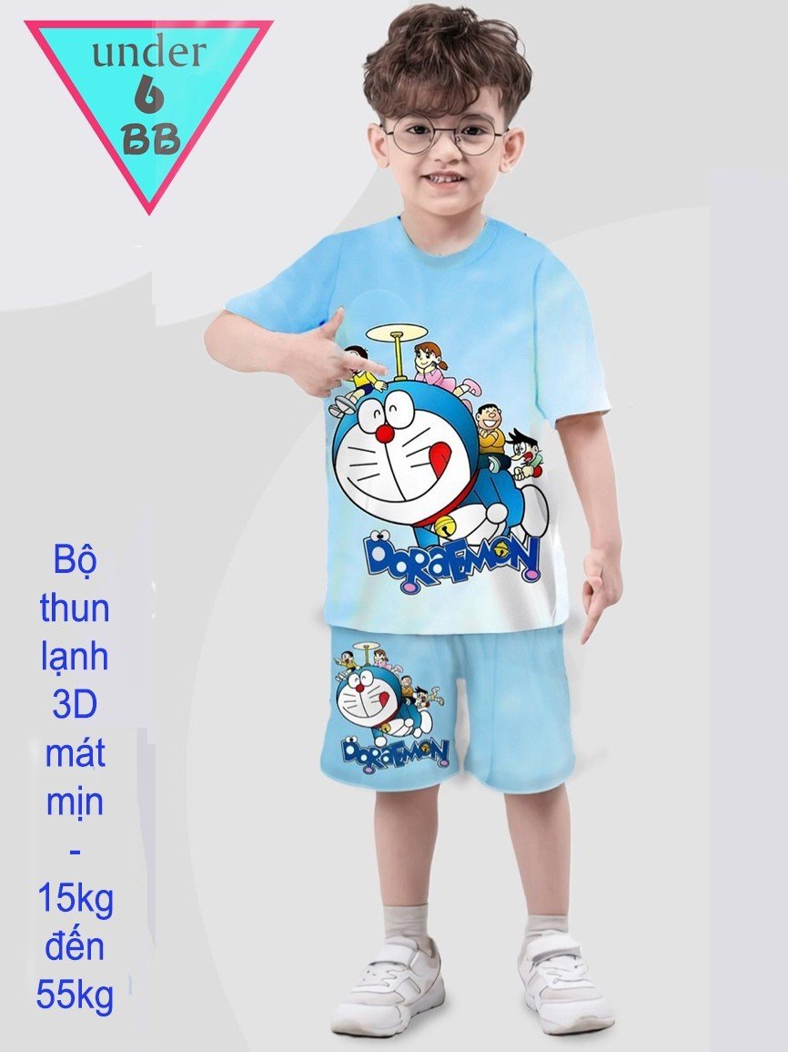 Đồ Bộ bé trai thun lạnh tay ngắn in 3D Doraemon siêu đáng yêu cho bé đi chơi , đi học