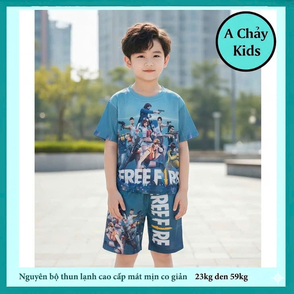 Đồ bộ bé trai thun lạnh tay ngắn in 3D hình game Free Fire cho bé đi chơi , đi học