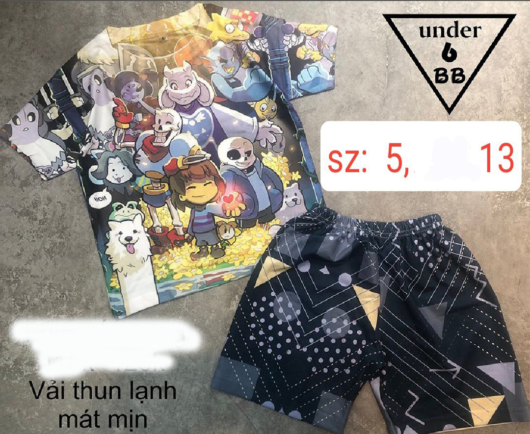 Đồ bộ bé trai thun lạnh tay ngắn in 3D hoạt hình cho bé đi chơi , đi học