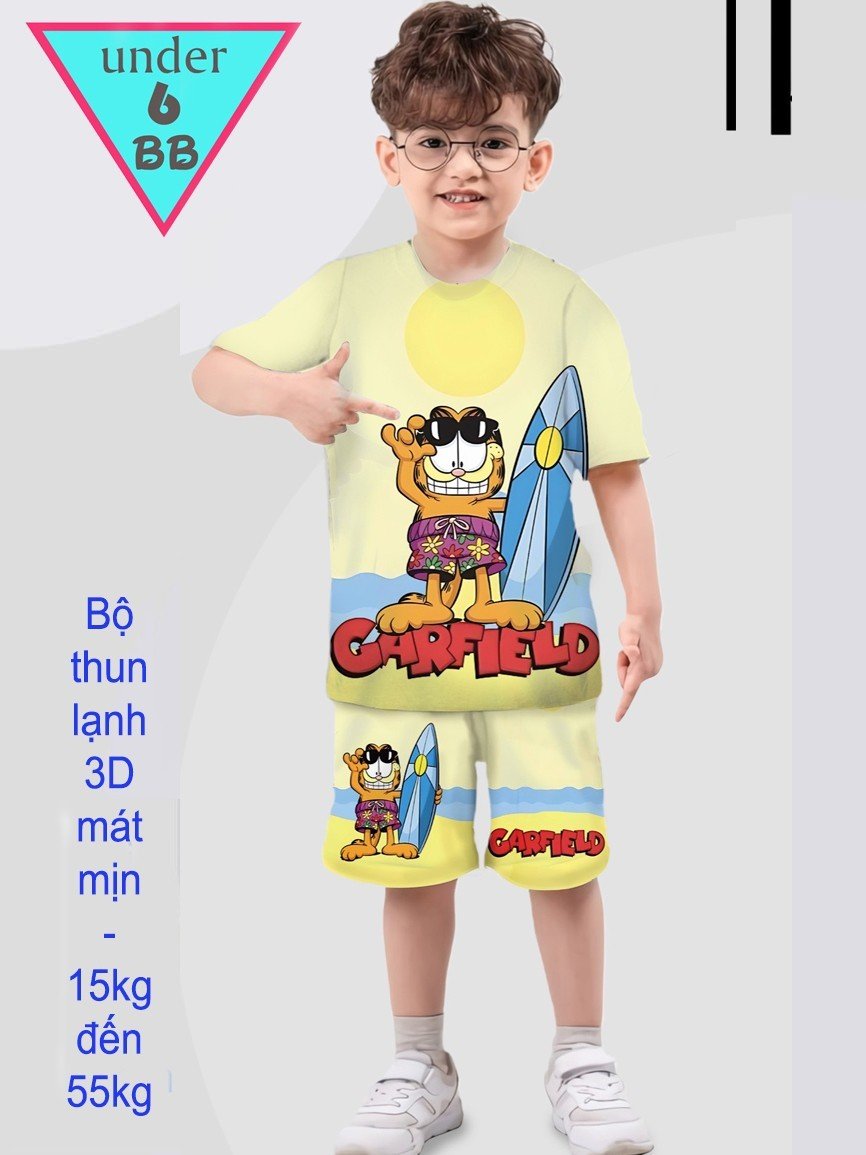 Đồ bộ bé trai thun lạnh tay ngắn in 3D hoạt hình cho bé đi chơi , đi học