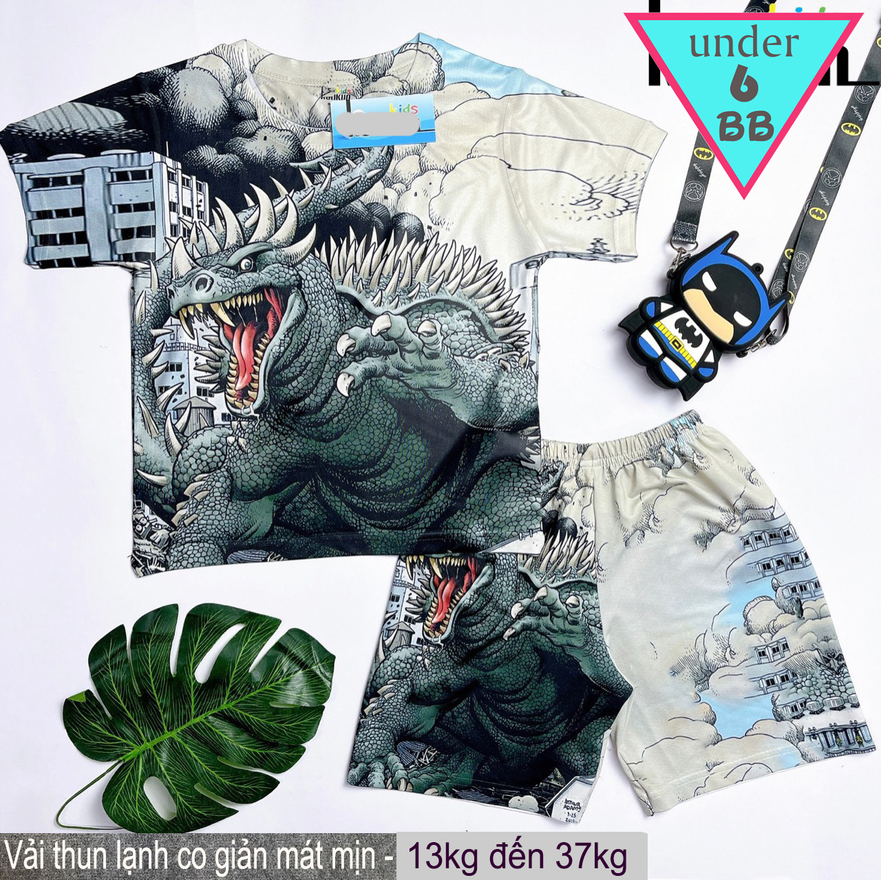 Đồ Bộ bé trai thun lạnh tay ngắn in 3D hình Khủng long Gozilla cho bé đi chơi ,đi học