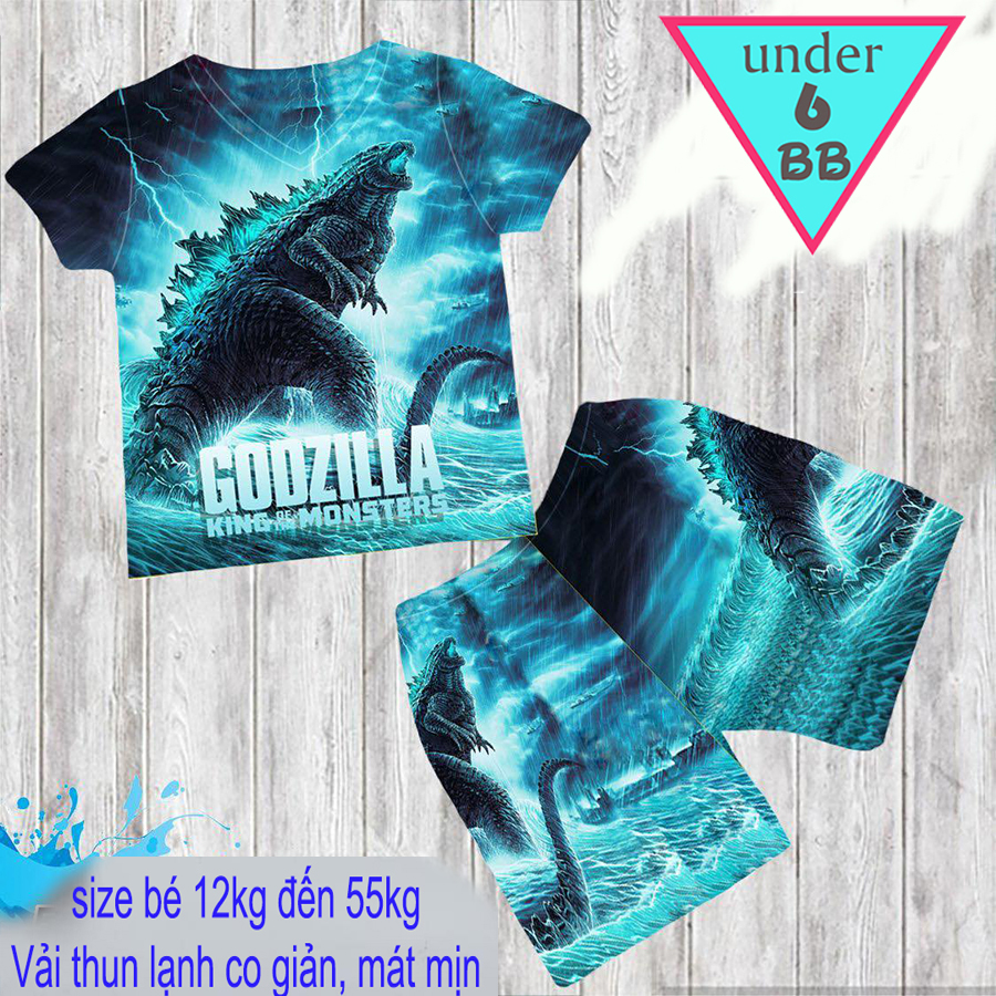 Đồ bộ bé trai thun lạnh tay ngắn in 3D hình khủng long cho bé đi chơi , đi học