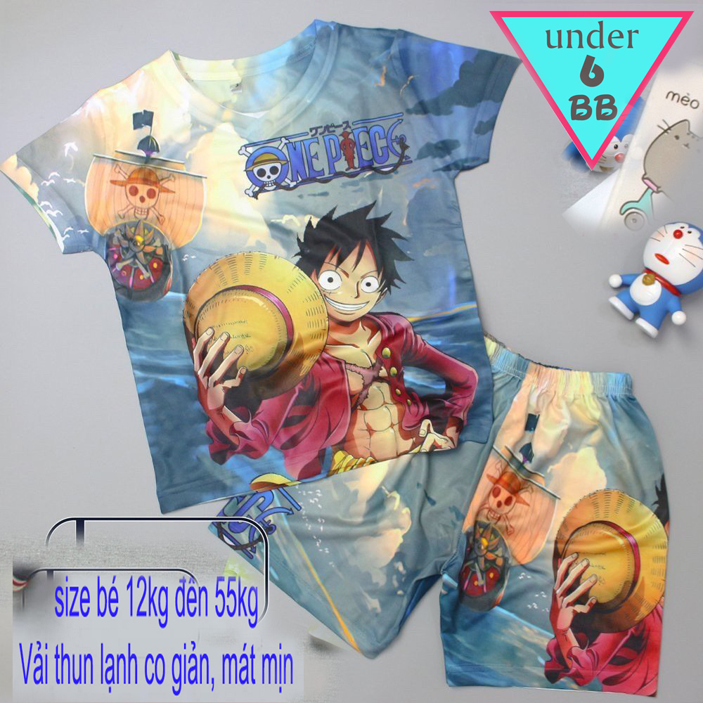 Đồ bộ bé trai thun lạnh tay ngắn in 3D hình Luffy cho bé đi chơi ,đi học
