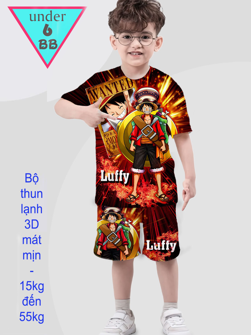 Đồ bộ bé trai thun lạnh tay ngắn in 3D hình Luffy one piece cho bé đi chơi , đi học