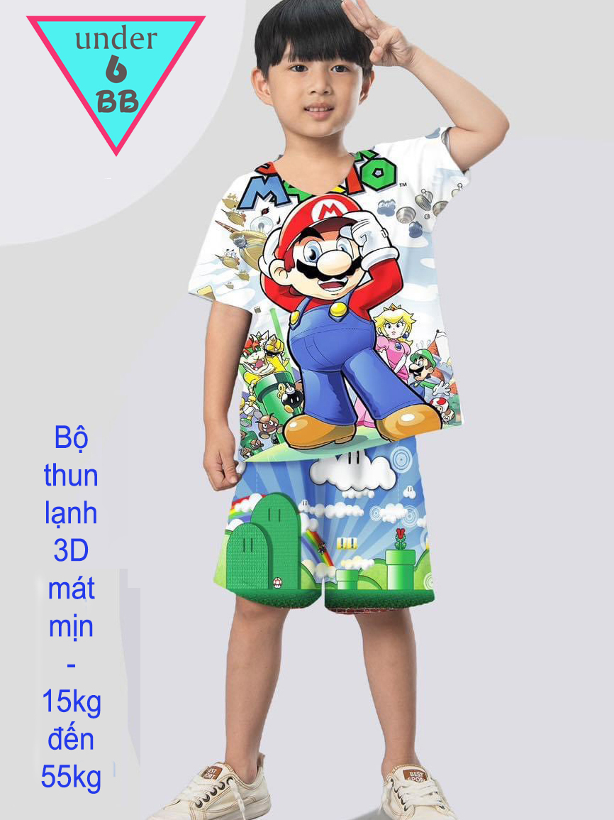 Đồ bộ bé trai thun lạnh tay ngắn in 3D hình Mario cho bé đi chơi , đi học