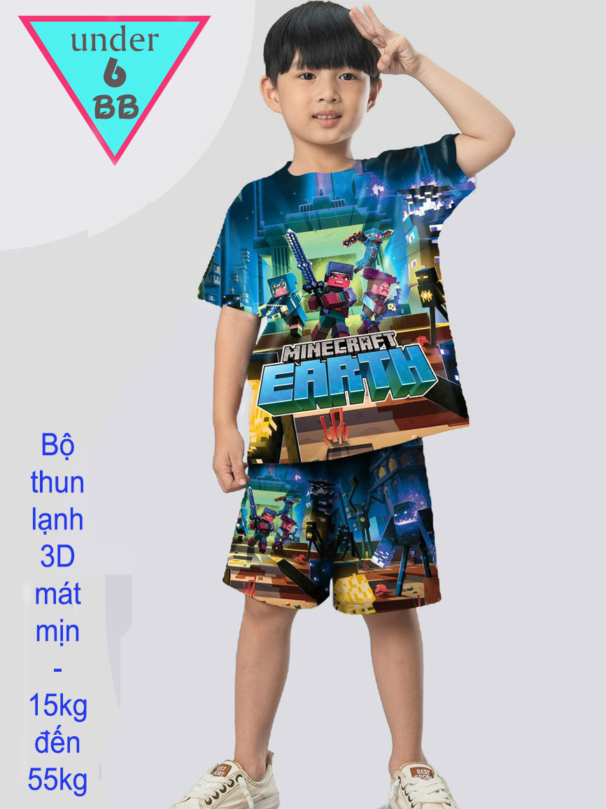 Đồ Bộ bé trai thun lạnh tay ngắn in 3D hình Minecraft cho bé đi chơi , đi học