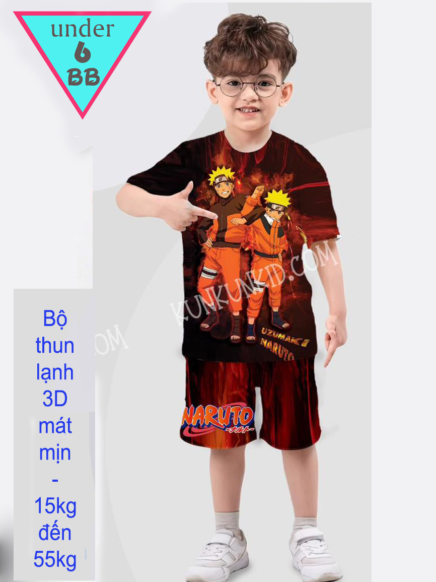 Đồ bộ bé trai thun lạnh tay ngắn in 3D hình Naruto cho bé đi chơi ,đi học