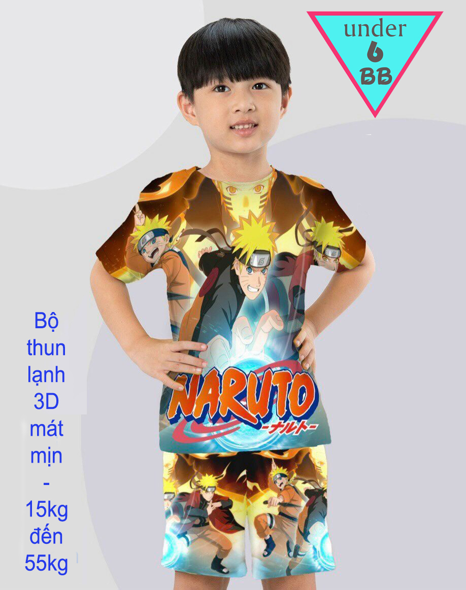 Đồ bộ bé trai thun lạnh tay ngắn in 3D hình Naruto cho bé đi chơi ,đi học