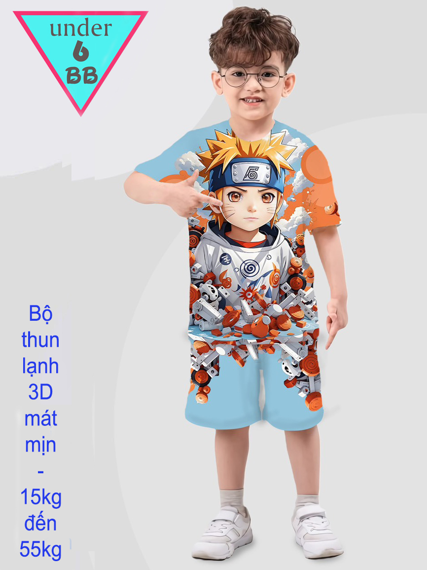 Đồ bộ bé trai thun lạnh tay ngắn in 3D hình nhân vật anime Naruto cho bé đi chơi , đi học