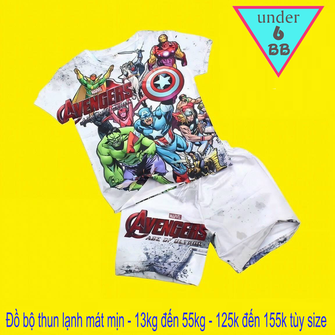 Đồ bộ bé trai thun lạnh tay ngắn in 3D hình biệt đội siêu anh hùng cho bé đi chơi , đi học