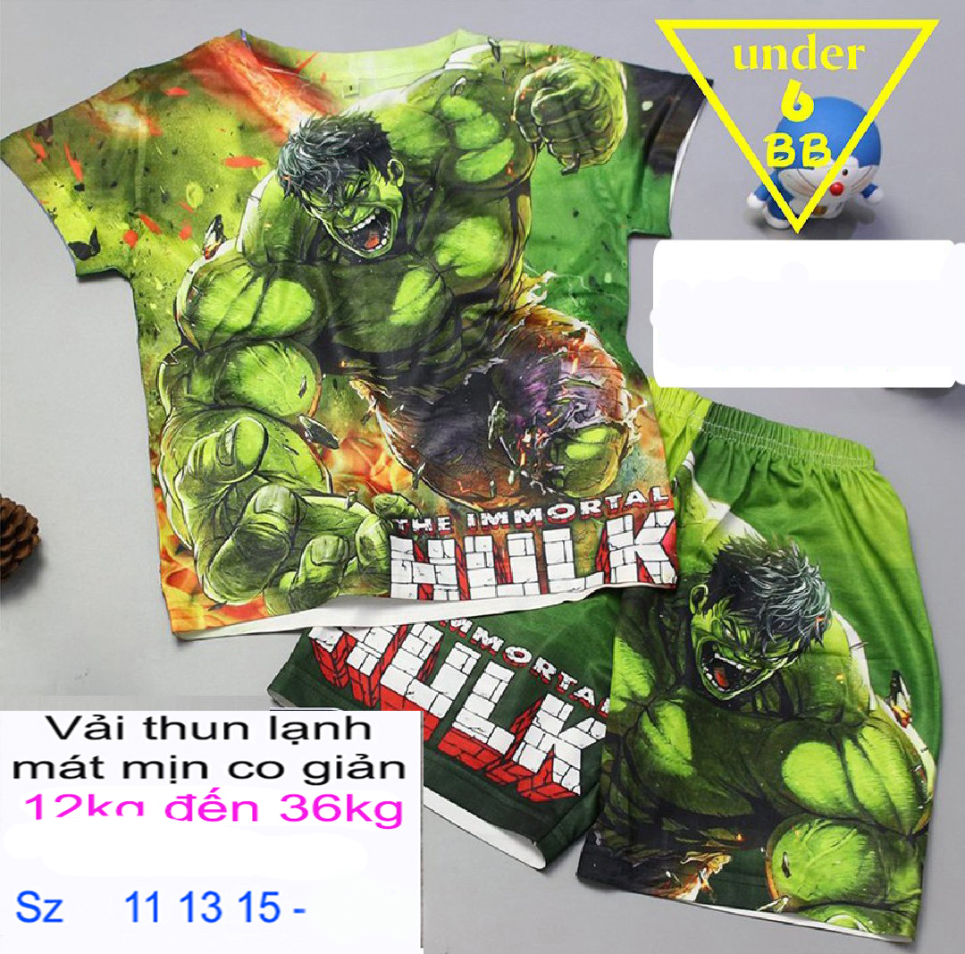 Đồ bộ bé trai thun lạnh tay ngắn in 3D khủng lồ xanh cho bé đi chơi , đi học