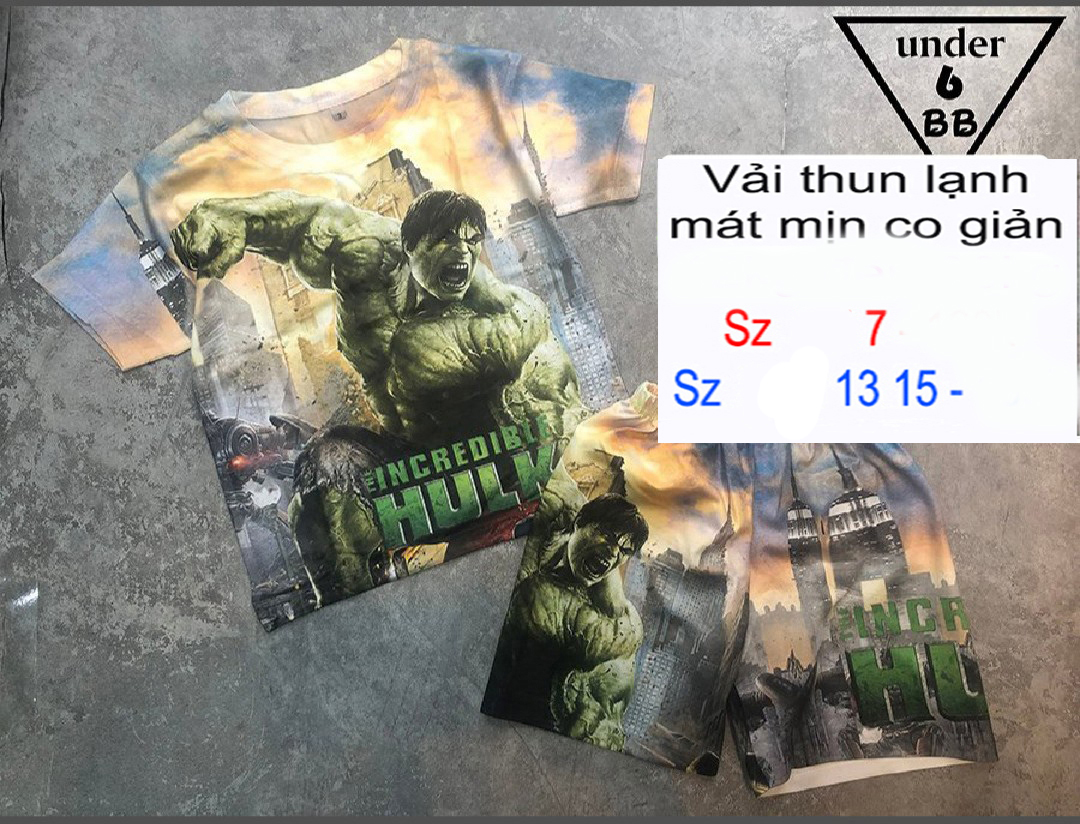 Đồ bộ bé trai thun lạnh tay ngắn in 3D hình khủng lồ xanh cho bé đi chơi , đi học
