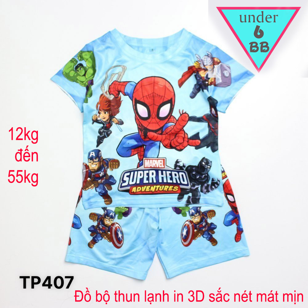 Đồ bộ bé trai thun lạnh tay ngắn in 3D hình siêu nhân nhện cho bé đi chơi , đi học
