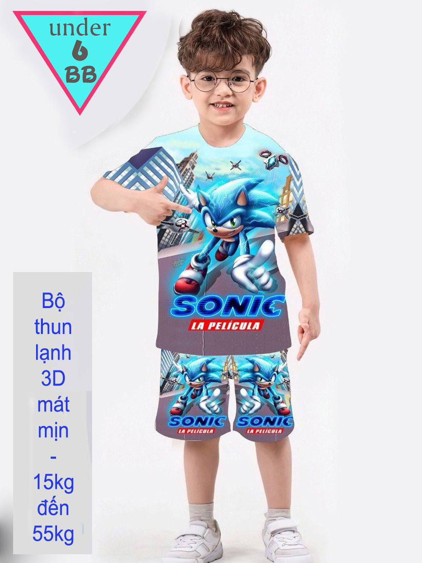 Đồ Bộ bé trai thun lạnh tay ngắn in 3D hình Sonic cho bé đi chơi , đi học