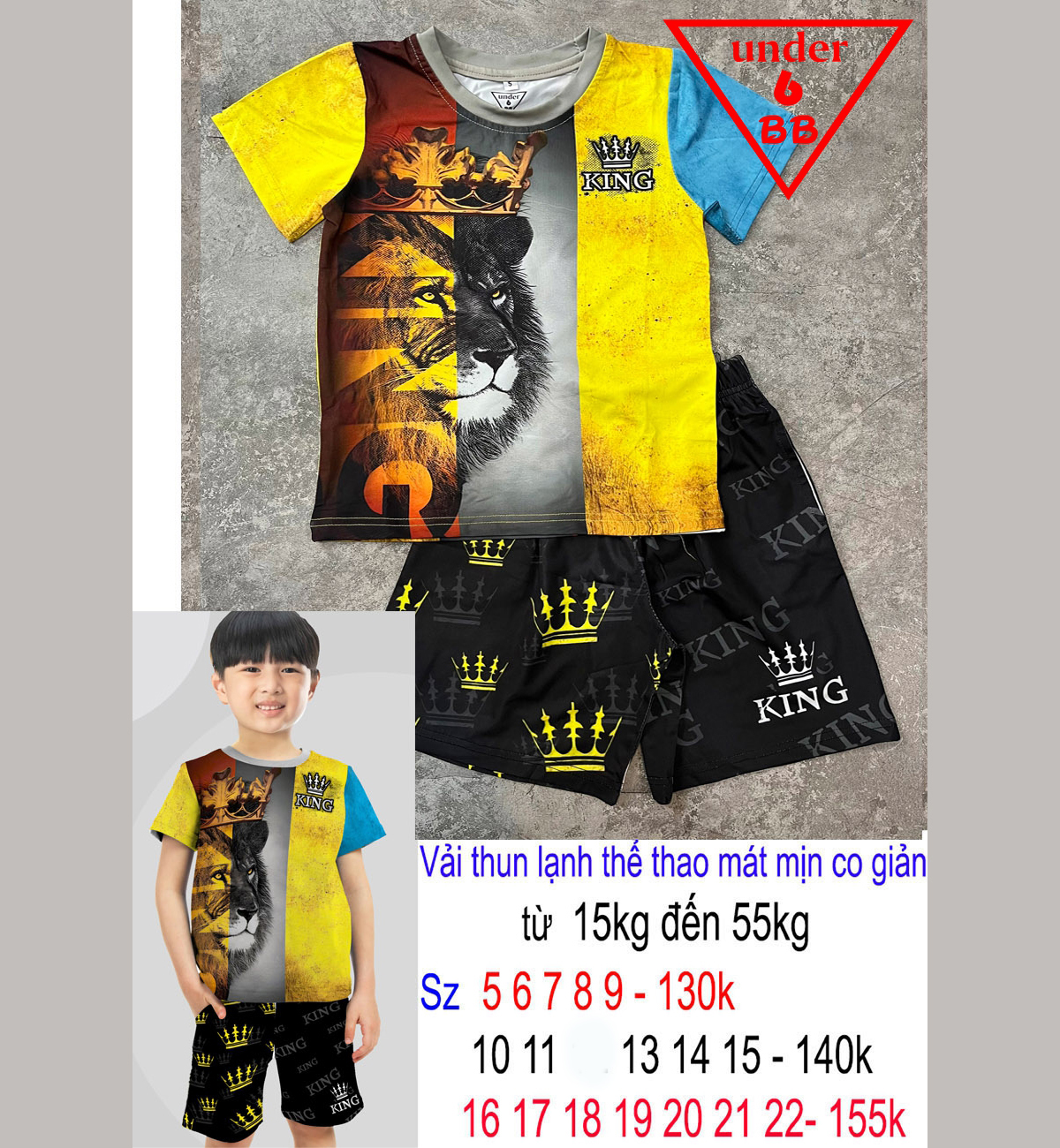 Đồ bộ bé trai thun lạnh thể thao in chữ king phong cách cá tính cho bé đi chơi , đi học