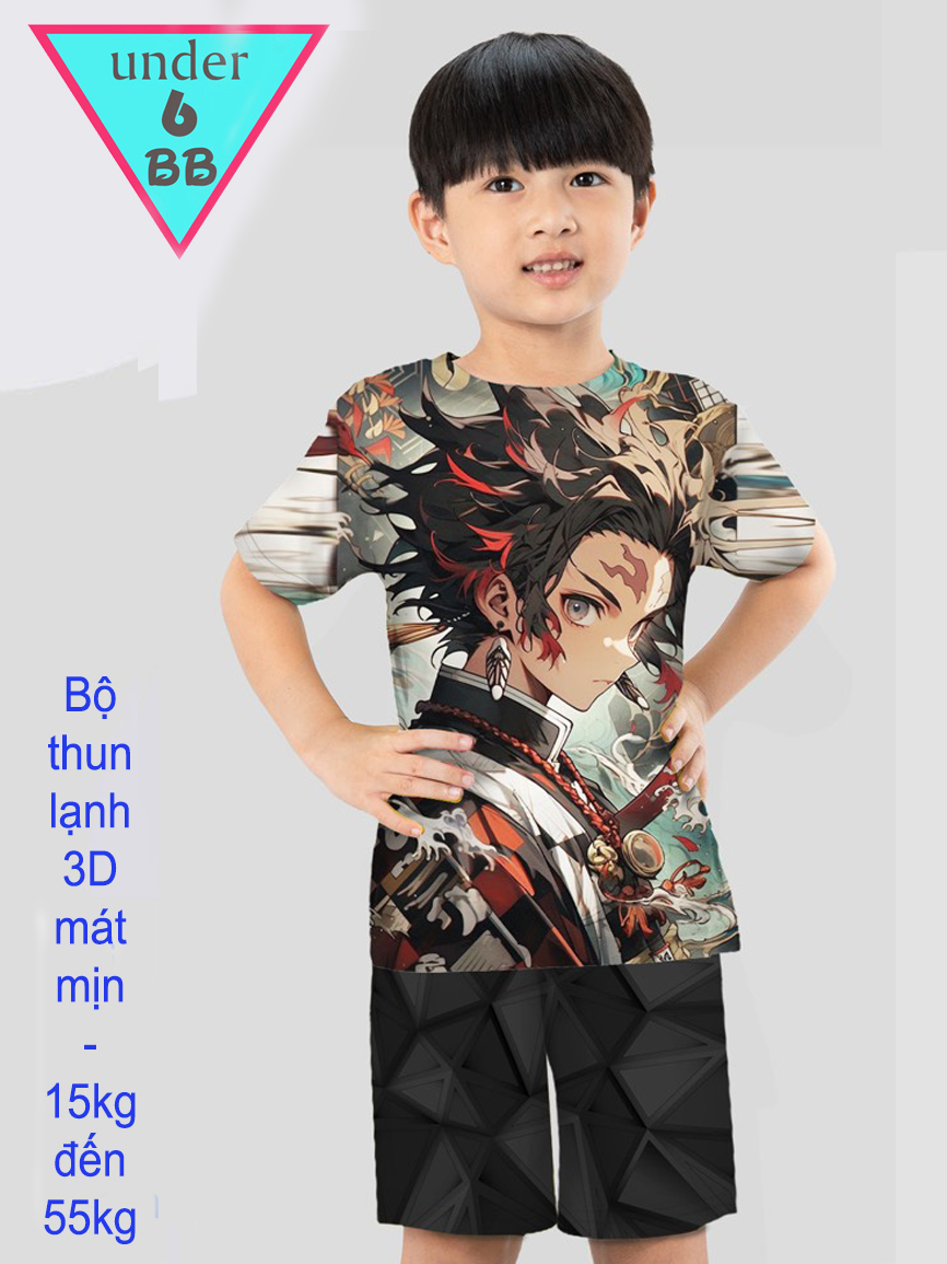 Đồ bộ bé trai thun lạnh tay ngắn in 3D hình anime Thanh Gươm Diệt Qủy - Demon Slayer cho bé đi chơi , đi học