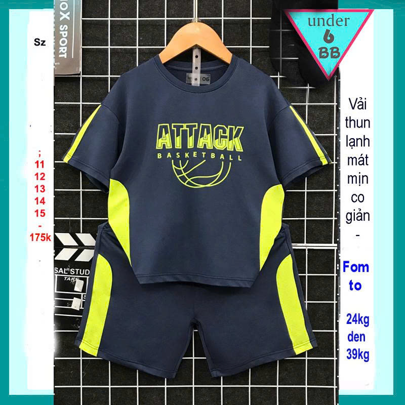 Đồ bộ bé trai thun lạnh thể thao in chữ ATTACK phong cách cá tính cho bé diện đi chơi , đi học