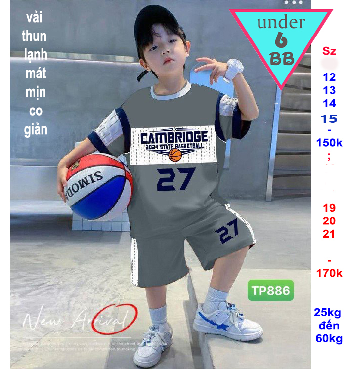 Đồ bộ bé trai thun lạnh thể thao tay ngắn in số 27 mang phong cách bóng rổ cho bé đi chơi , đi học
