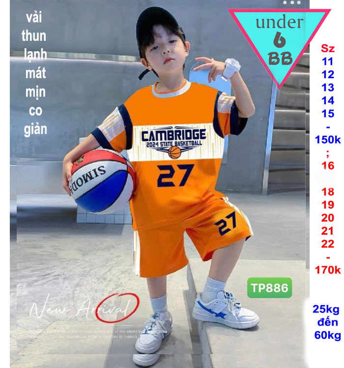 Đồ bộ bé trai thun lạnh thể thao tay ngắn in số 27 mang phong cách bóng rổ cho bé đi chơi , đi học