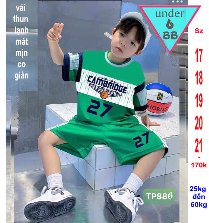 Đồ bộ bé trai thun lạnh thể thao tay ngắn in số 27 mang phong cách bóng rổ cho bé đi chơi , đi học