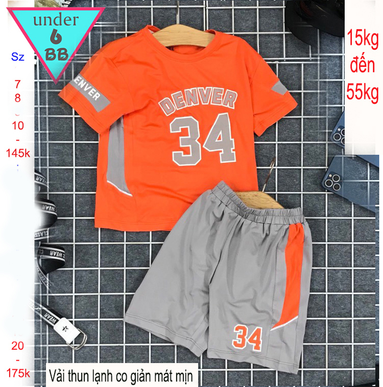 Đồ bộ bé trai thun lạnh thể thao tay ngắn in số 34 cho bé đi chơi , đi học